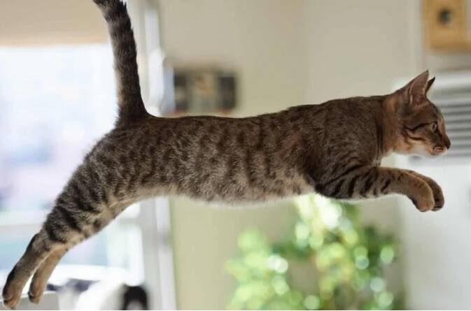 Un gato puede saltar hasta seis veces la longitud de su cuerpo en un solo salto. Esto se debe a la estructura de sus músculos y huesos, que les permite almacenar energía en sus patas traseras y liberarla de manera explosiva. Esta habilidad les ayuda a cazar y escapar de los depredadores en la naturaleza. - Tienen un comportamiento de caza instintivo.